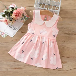 100% Cotton Baby Girl Peter Pan Collar Floral Print Tank Dress