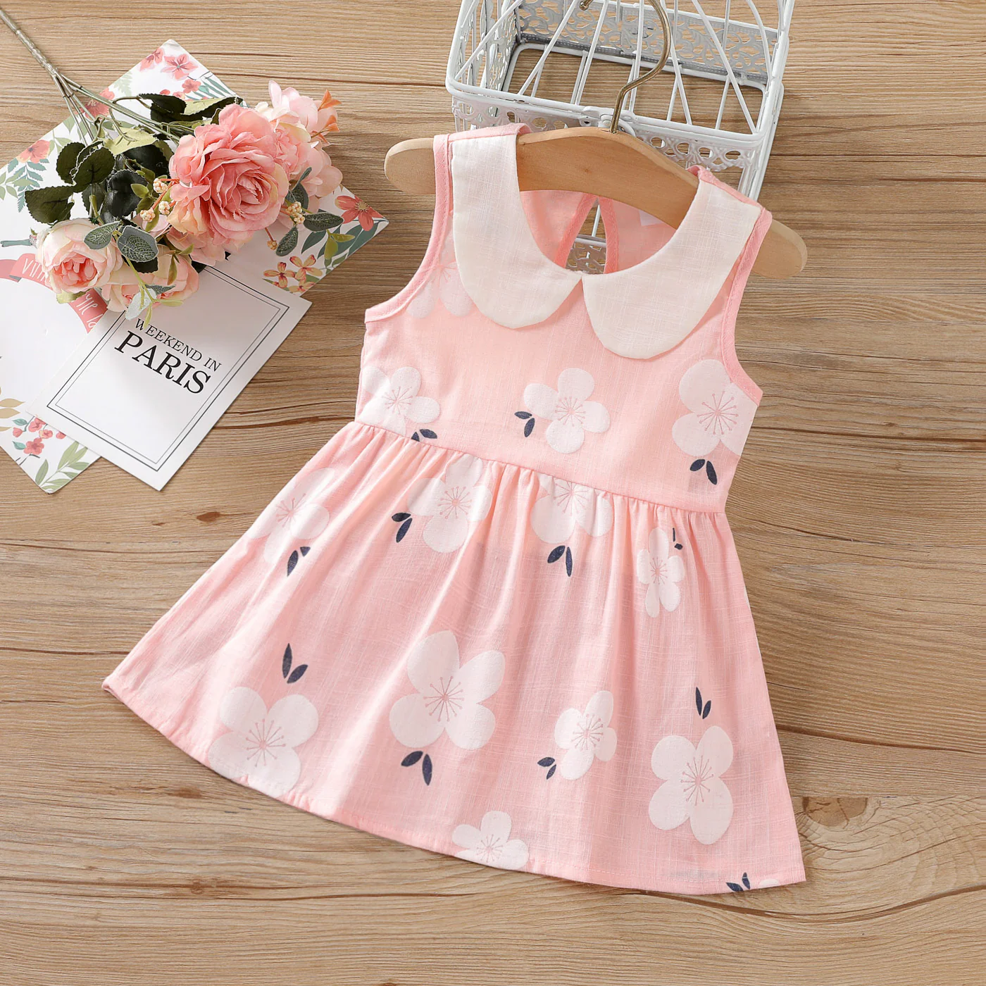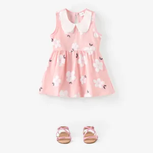 Sweeten your little girl’s wardrobe with our 100% Cotton Baby Girl Peter Pan Collar Floral Print Tank Dress!