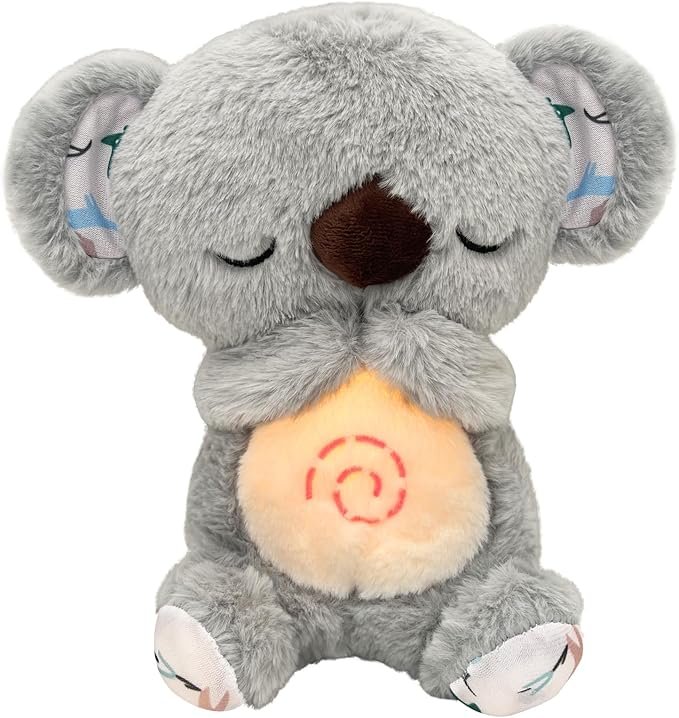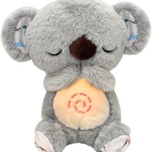 The Calming Koala Toy, designed to provide a sense of security and tranquility for your newborn. This adorable plush toy features a unique rhythmic breathing motion, mimicking the gentle rise and fall of a parent’s chest, to help calm your little one.