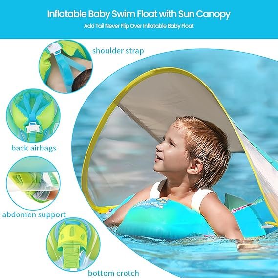 Keep your little one safe and supported in the pool with our baby swimming inflatable float. Made with comfortable anti-stick fabric and a durable leak-proof PVC material, our float provides 60ΒΊ sun protection and has passed the strict international safety standard CPC standard.